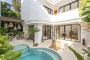 Casa Cherish 3 Bedroom Villa is a stylish private pool villa in Canggu, Bali, designed with signature Mediterranean-inspired architecture and modern tropical comfort. Ideal for families or groups of up to 6 guests, the villa features three spacious king bedrooms with en-suite bathrooms, offering privacy and comfort in a serene setting.