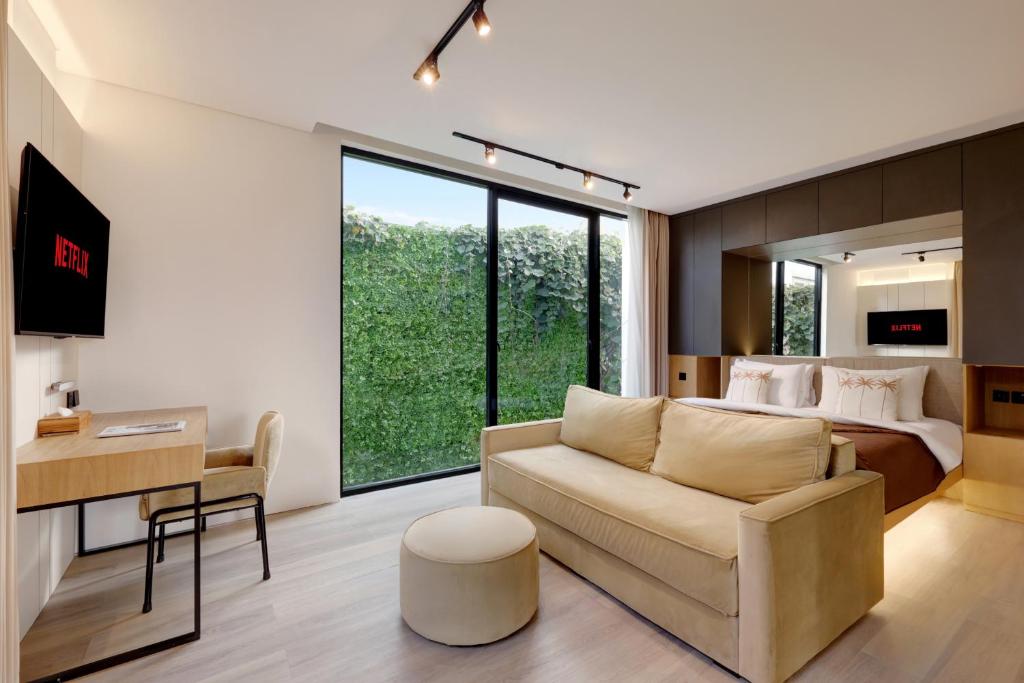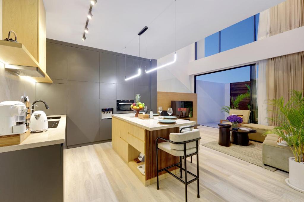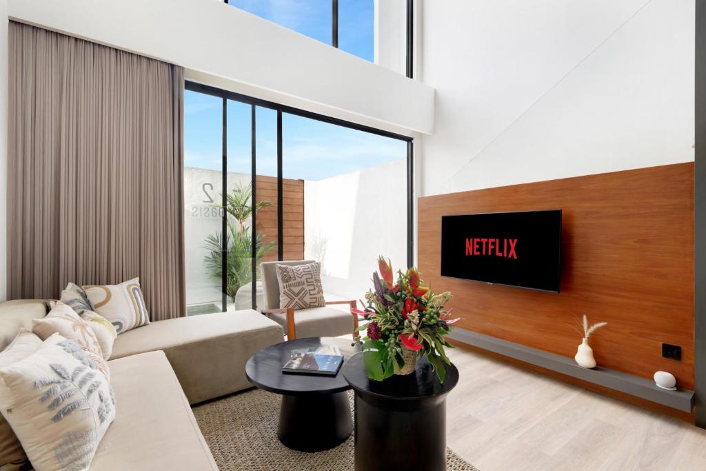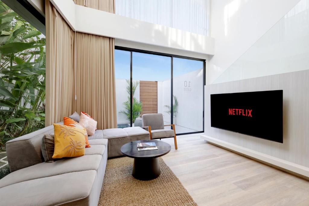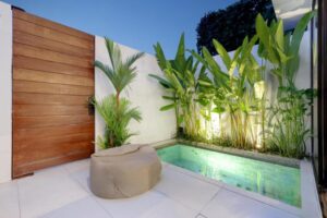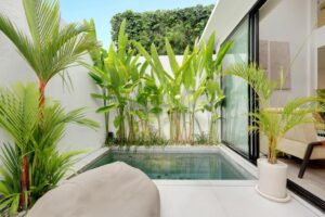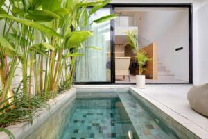 Oasis Smart Villa is a stylish 2-bedroom private pool villa in Berawa, Canggu, ideal for couples, friends, families, or remote workers seeking comfort and convenience. Designed with sleek modern interiors, the villa features a private swimming pool, sunken lounge terrace, and enclosed living space.