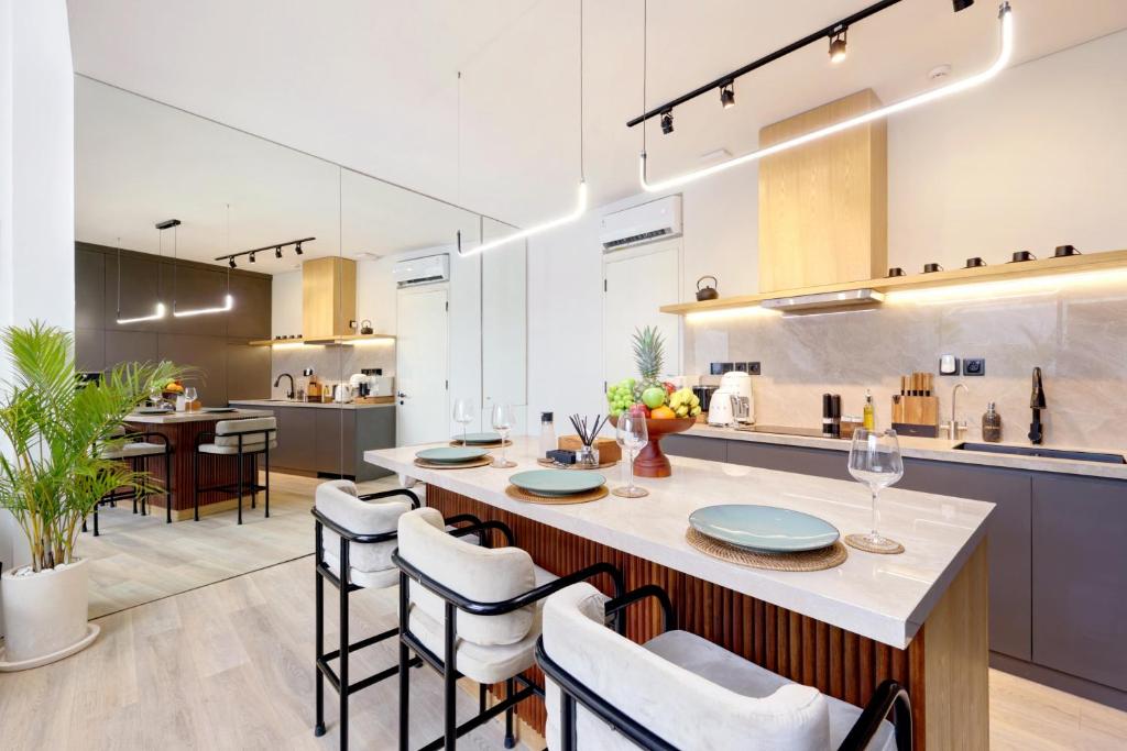 Each bedroom includes an en-suite bathroom, while guests enjoy a fully equipped kitchen, dedicated workspace, high-speed Wi-Fi, and streaming TV for work or leisure stays.